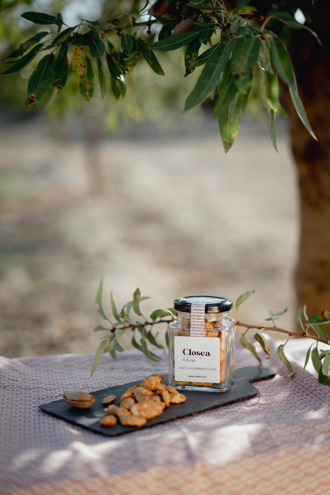 Aquestes ametlles s’elaboren de manera artesanal a partir d’ametlles seleccionades que es torren lleugerament per potenciar-ne l’aroma i el sabor. Posteriorment, es caramel·litzen únicament amb sucre, creant una capa fina, cruixent i transparent que respecta el gust original del fruit sec. El procés es realitza amb cura, separant les ametlles una a una per garantir una textura òptima i un acabat uniforme. El resultat és un producte natural, sense gluten, que conserva tota l’autenticitat i qualitat de l’ametlla caramel·litzada tradicional. Elaborat per Fruits Secs Les Garrigues.