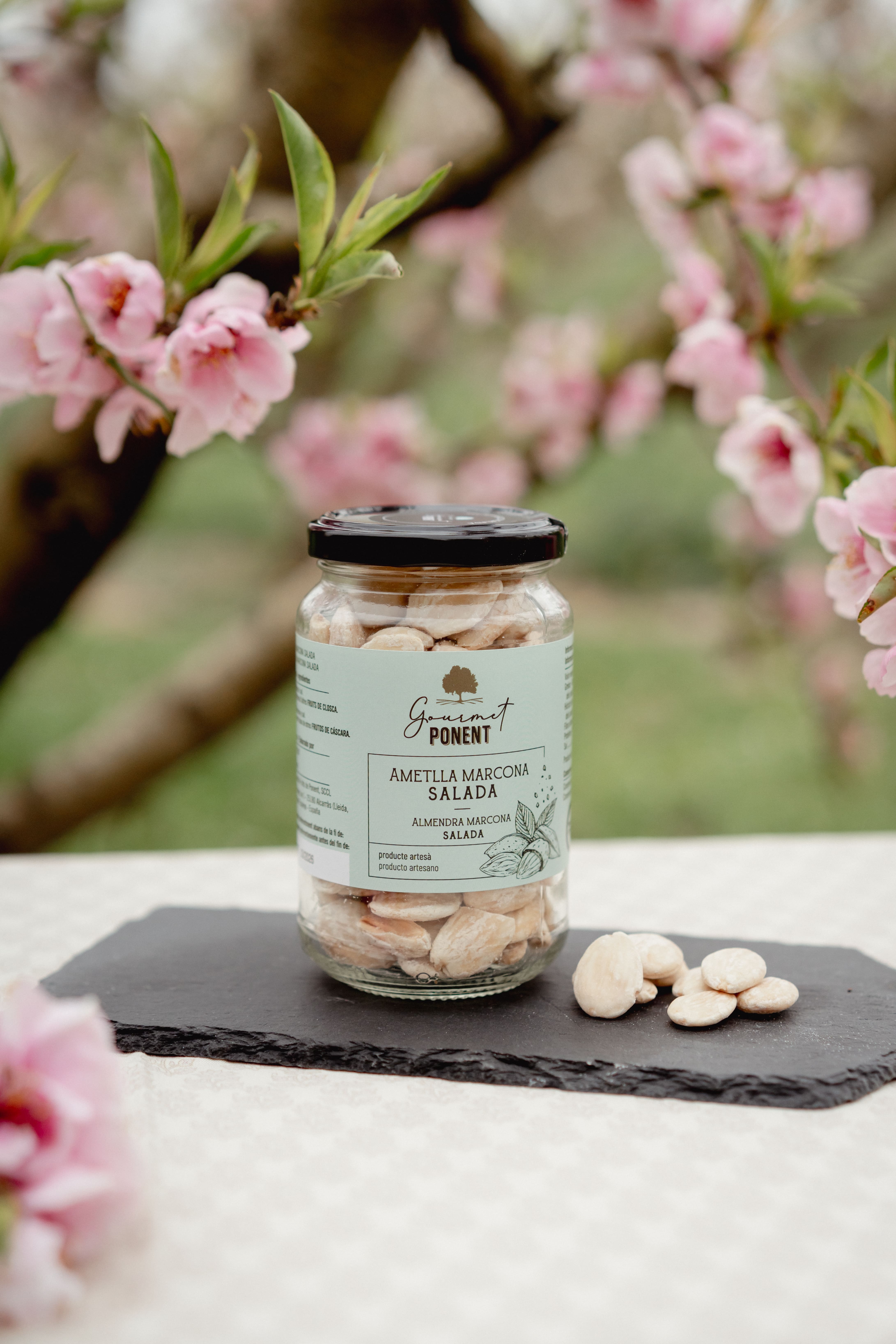 Ametlla marcona salada Fruits de Ponent ideal per a compartir, com acompanyant d’un bon vermut i per picar entre hores.