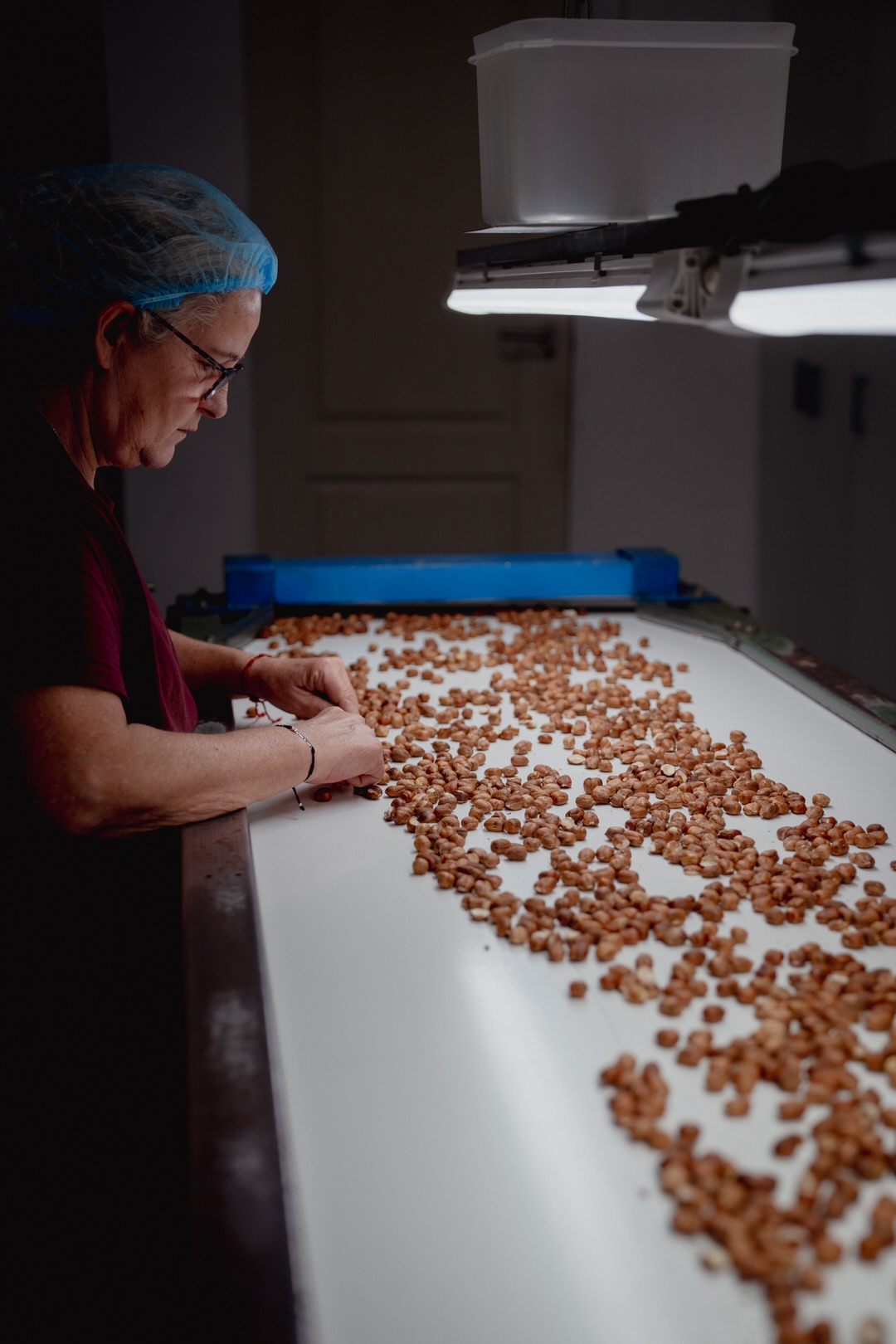 Per tal de torrar les avellanes, fem servir un forn de llenya, el qual aporta un sabor molt diferent de qualsevol altra avellana torrada en un forn de gas. Sense oblidar el punt de torrat òptim, aporta una textura cruixent excepcional al paladar a l'hora de degustar-lo. Aquest procés dura de 3 a 4 hores, fet diferencial d'una avellana torrada de manera industrial.