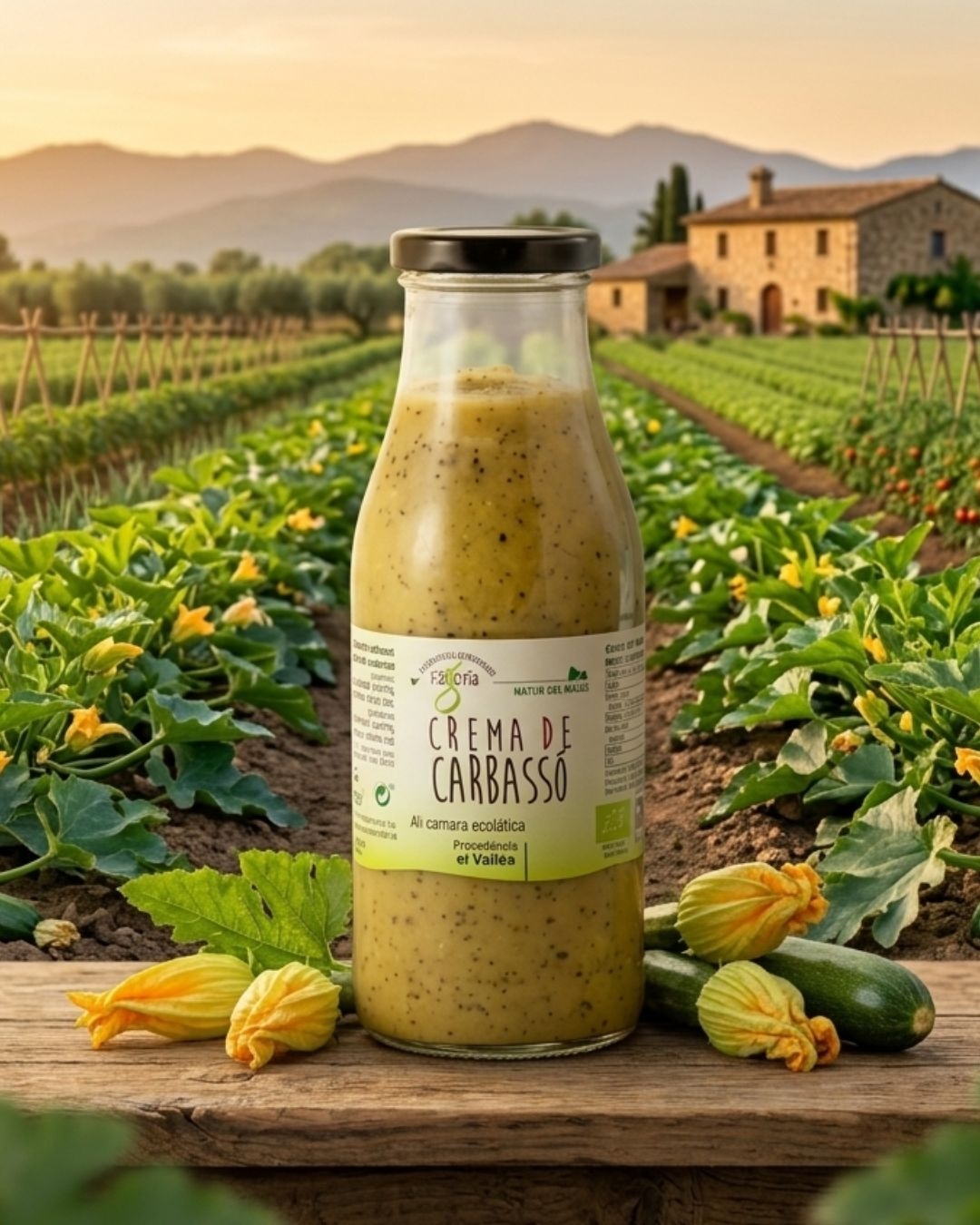 Ingredients: Aigua, carbassó, porros, oli d’oliva verge extra i sal.