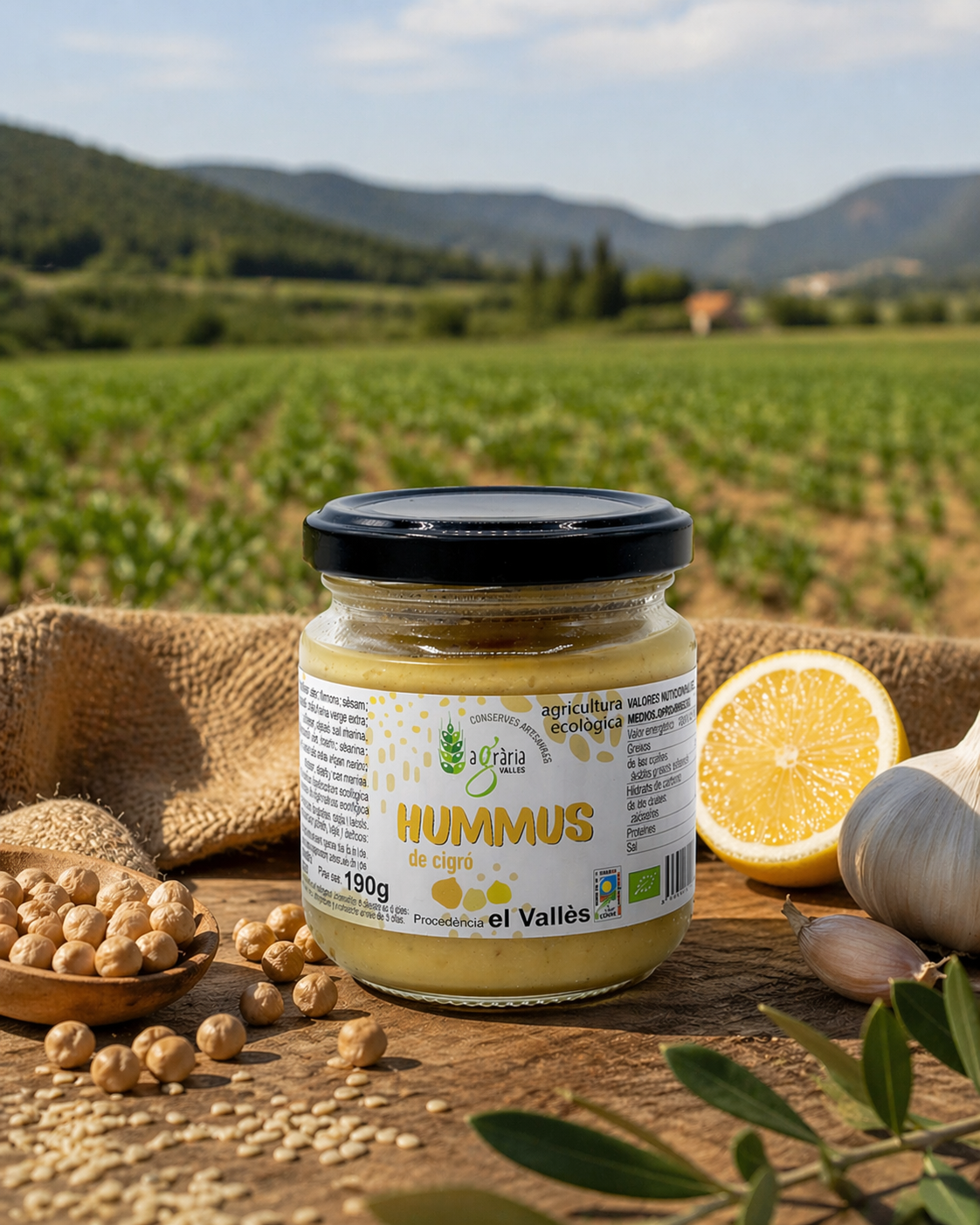 Aquest Hummus del Vallès està elaborat amb cigrons de primera qualitat cultivats als camps vallesans, reconeguts pel seu sabor suau i la seva textura melosa. Gràcies a aquesta matèria primera local, s’ha aconseguit un hummus sorprenentment cremós, equilibrat i ple d’aroma.