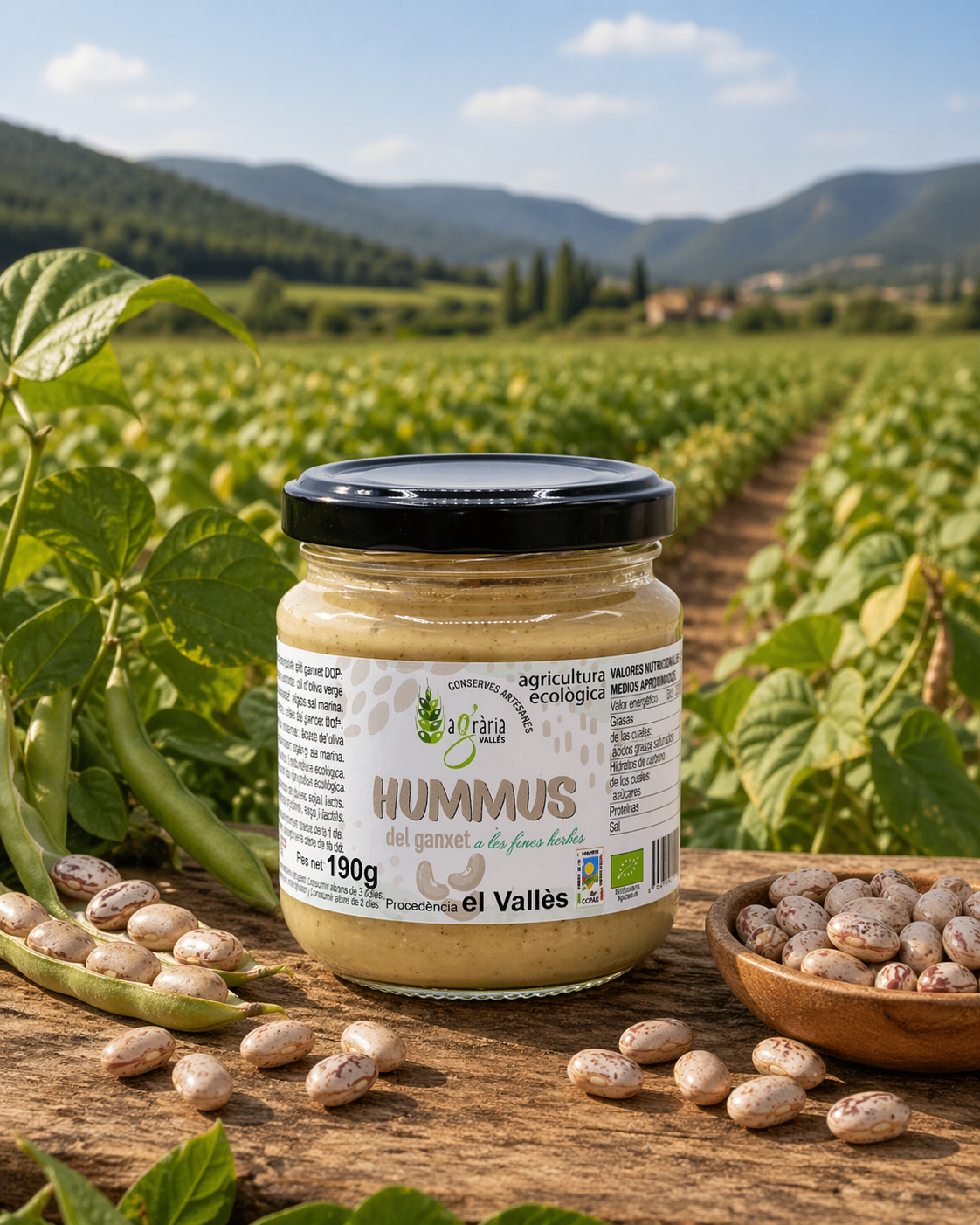 L'Hummus de Mongeta del Ganxet de l'Agrària del Vallès, elaborat amb mongeta del ganxet de primera qualitat dels camps del Vallès, reconeguda per la seva textura extraordinàriament cremosa i la pell gairebé imperceptible, aconsegueix un resultat sorprenent: lleuger, suau, equilibrat i amb un punt dolç natural.