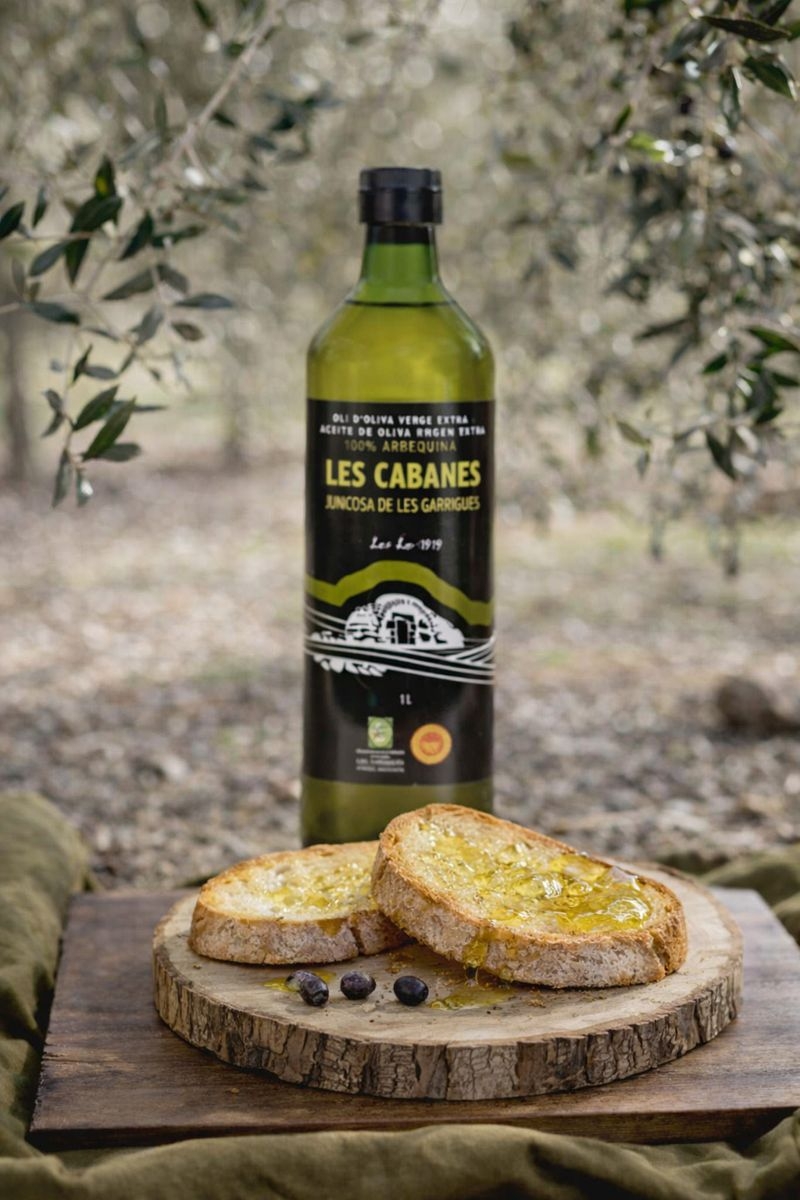 L’oli d’oliva verge extra Les Cabanes és un producte elaborat amb 100% olives arbequines collides i premsades al molí propi de la Cooperativa de Juncosa de les Garrigues (Lleida).