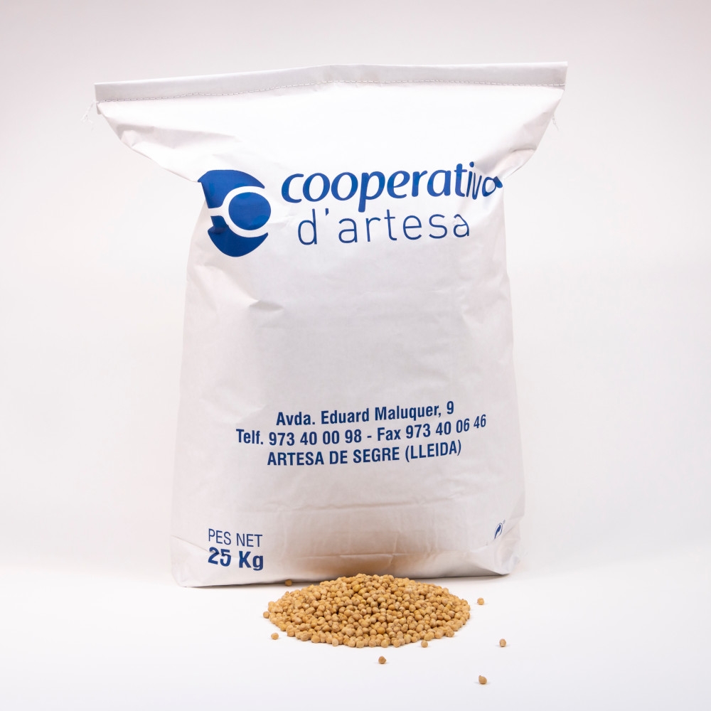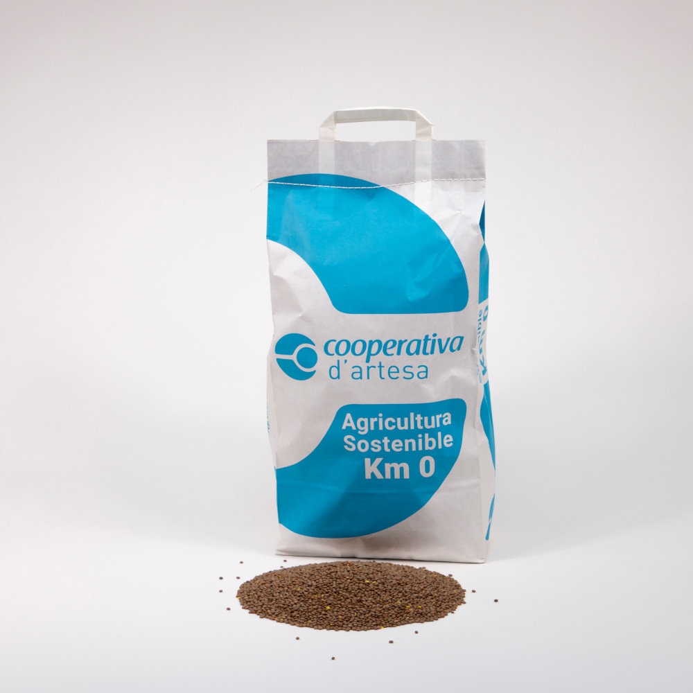 Llèntia Pardina cultivada a les nostres finques de l’Alta Segarra i produïda per la Cooperativa d’Artesa de Segre. No utilitzem ingredients modificats genèticament. No necessita remull previ i es cou fàcilment sense que es desprengui la pell, mantenint el gra sencer.