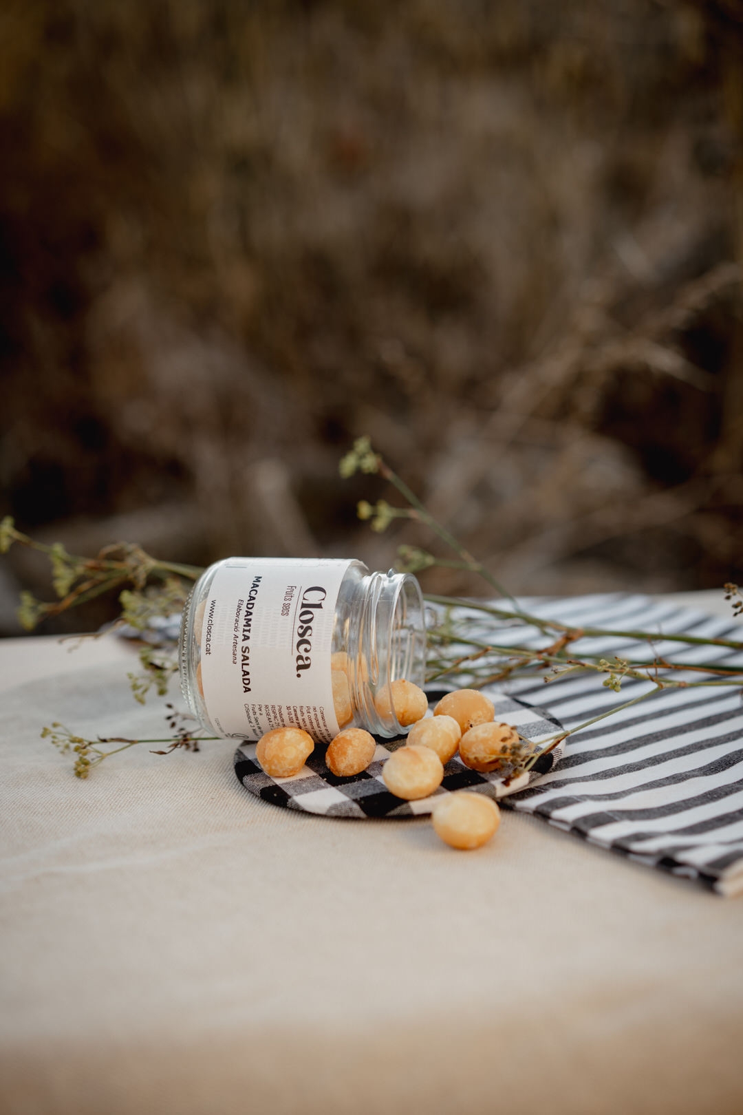 Les macadàmies salades de La Closca són un mos fi i saborós, elaborat amb fruits secs d’alta qualitat, oli d’oliva verge extra i un punt just de sal.