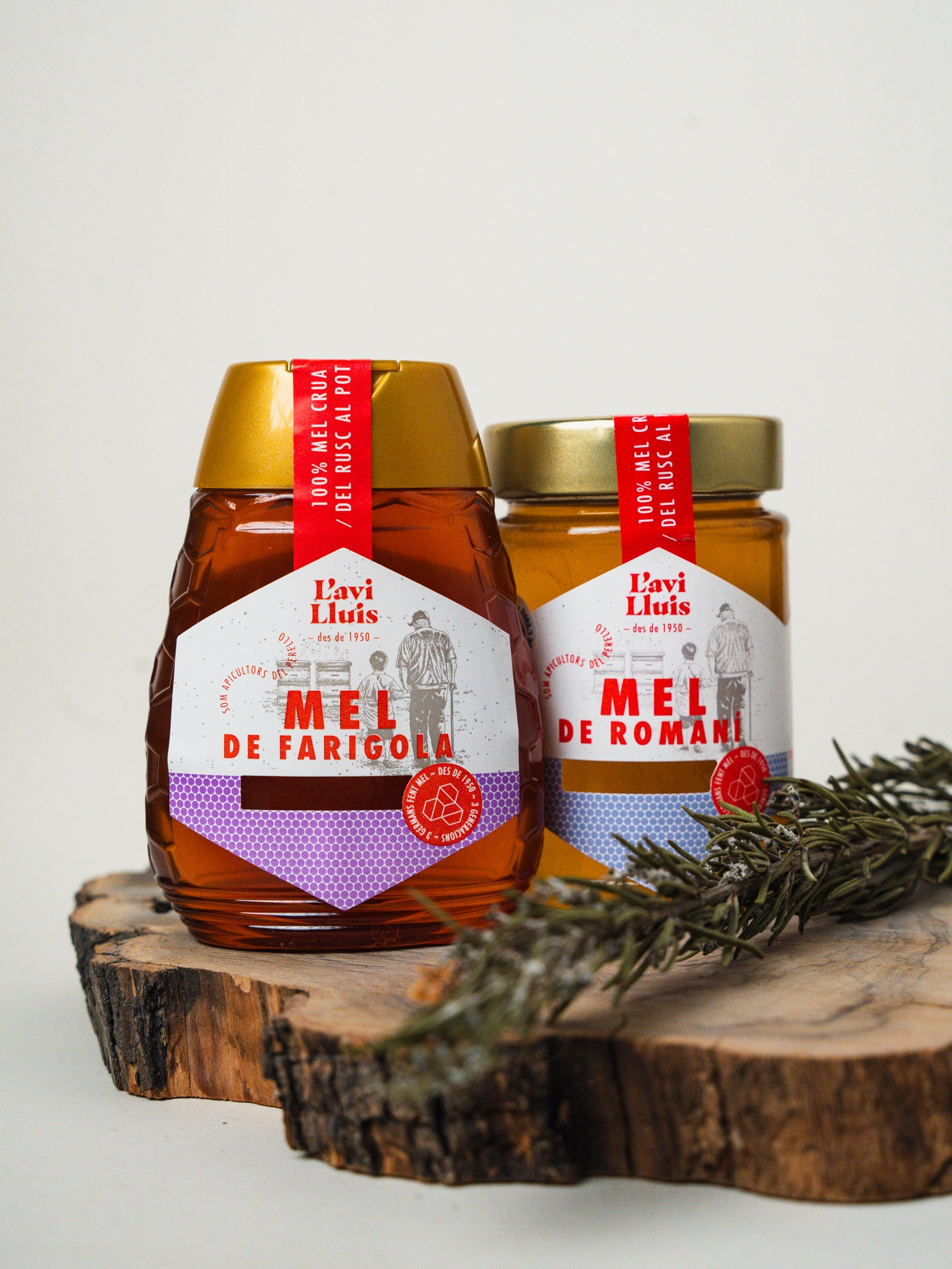 Mel de Farigola fosca i aromàtica elaborada amb nèctar de farigola, de gust dolç amb tocs àcids i aroma intensa i persistent; reconfortant i ideal per a infusions i per cuina tradicional.