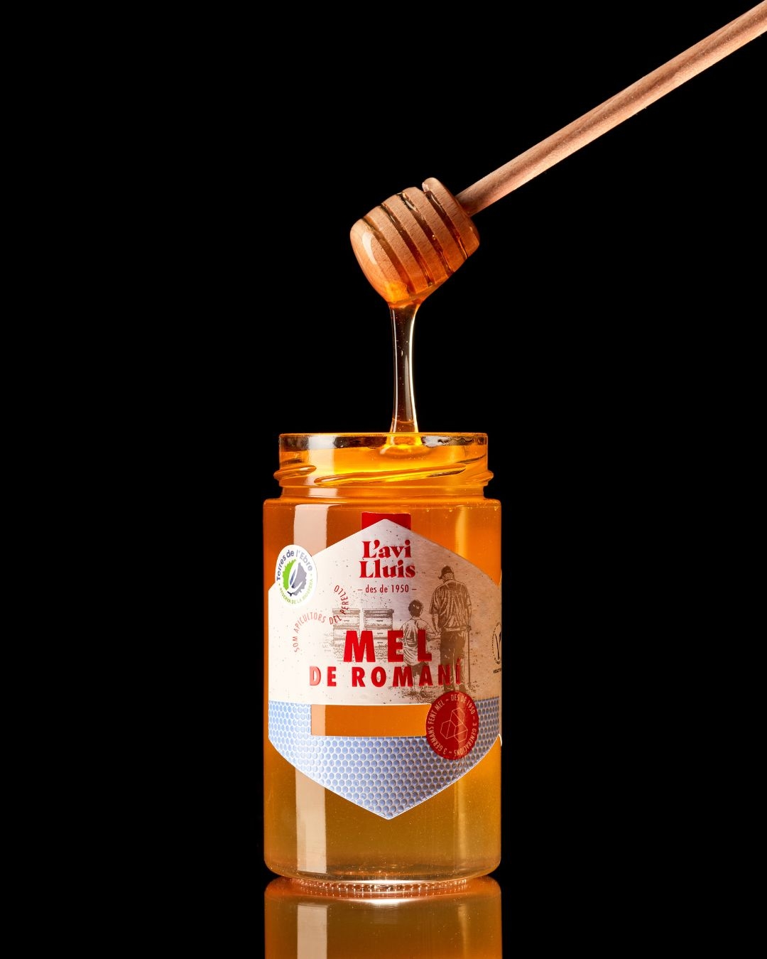 Mel de Romaní d’aroma floral i gust suau, lleugerament persistent, elaborada amb producció tradicional dins la reserva de la biosfera de les Terres de l’Ebre.