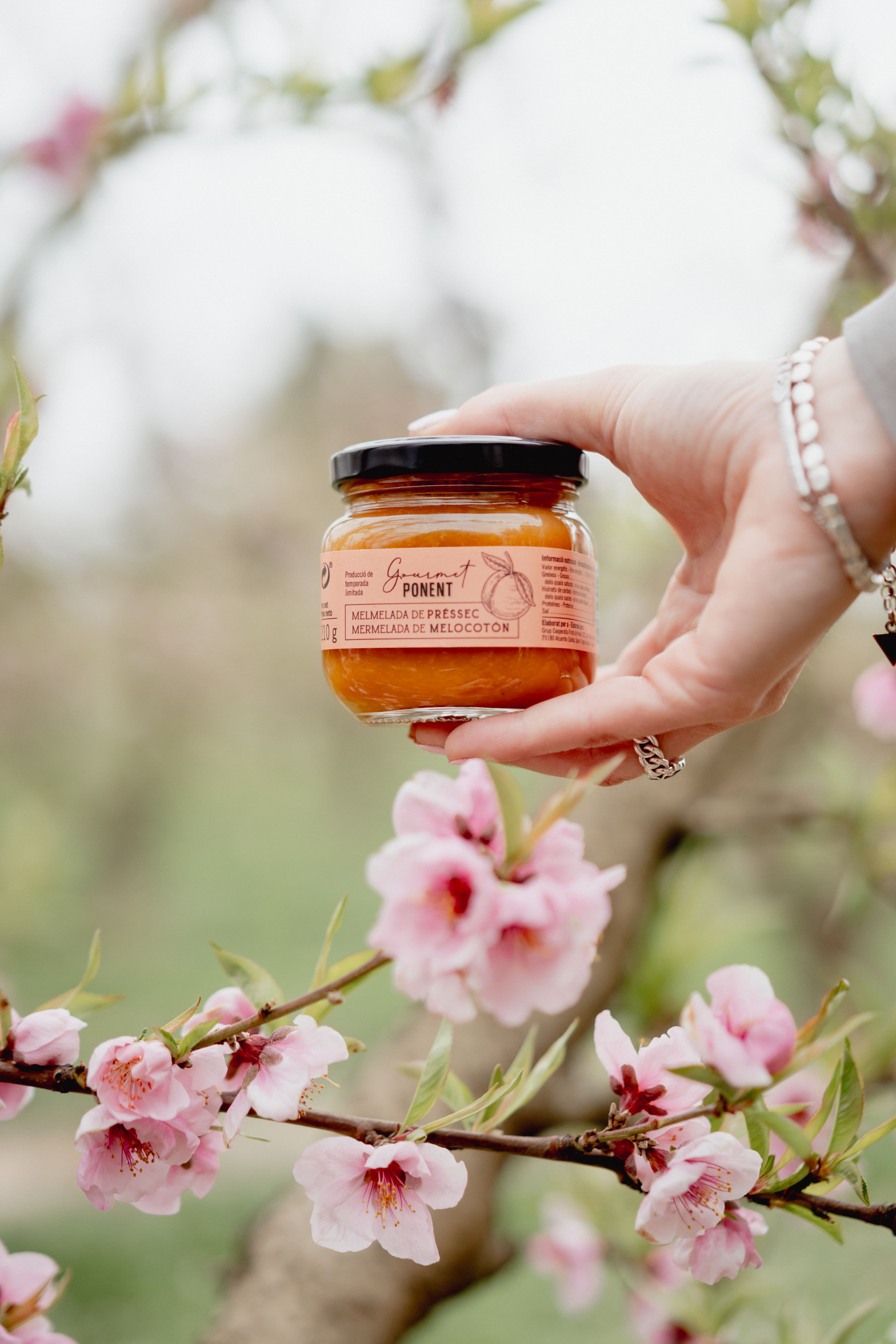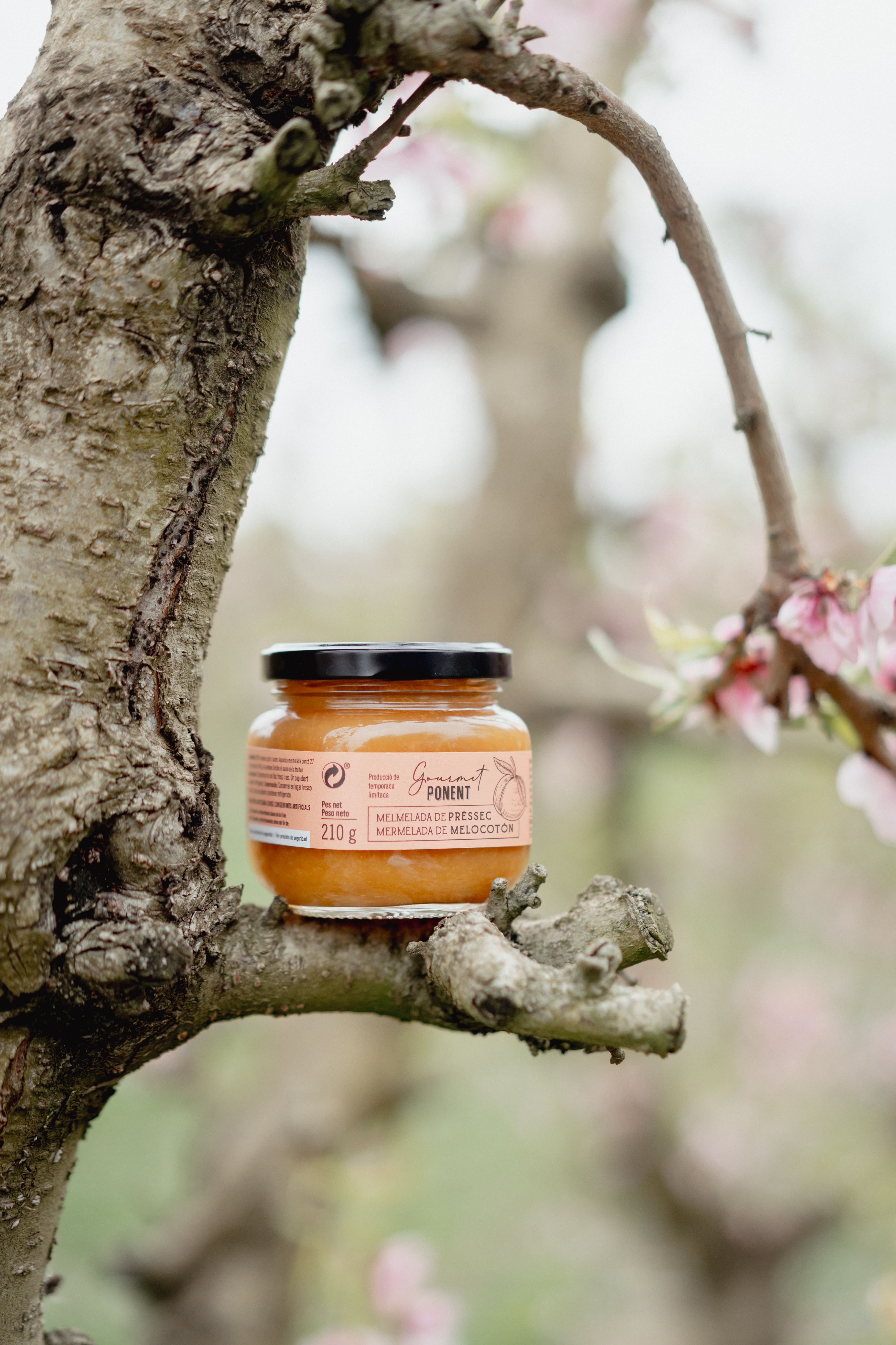 La nostra melmelada de prèssec s'elabora seguint un mètode tradicional que posa en valor la qualitat de la fruita d'os de les nostres terres. El procés comença amb la cocció de peces seleccionades de prèssec, que s'utilitzen senceres, trossejades o triturades per mantenir l'essència natural de la fruita. Durant aquest procés, s'afegeix el sucre necessari i es cuina lentament fins a assolir una textura espessa i una consistència melosa ideal.