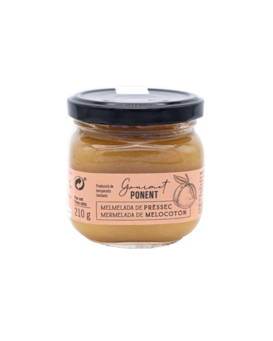 Melmelada artesana de préssec, elaborada amb fruita seleccionada de les nostres pròpies collites a la cooperativa Fruits de Ponent. Amb un color groc-taronja intens i una textura espessa i natural, és la conserva perfecta per als amants de la fruita autèntica.