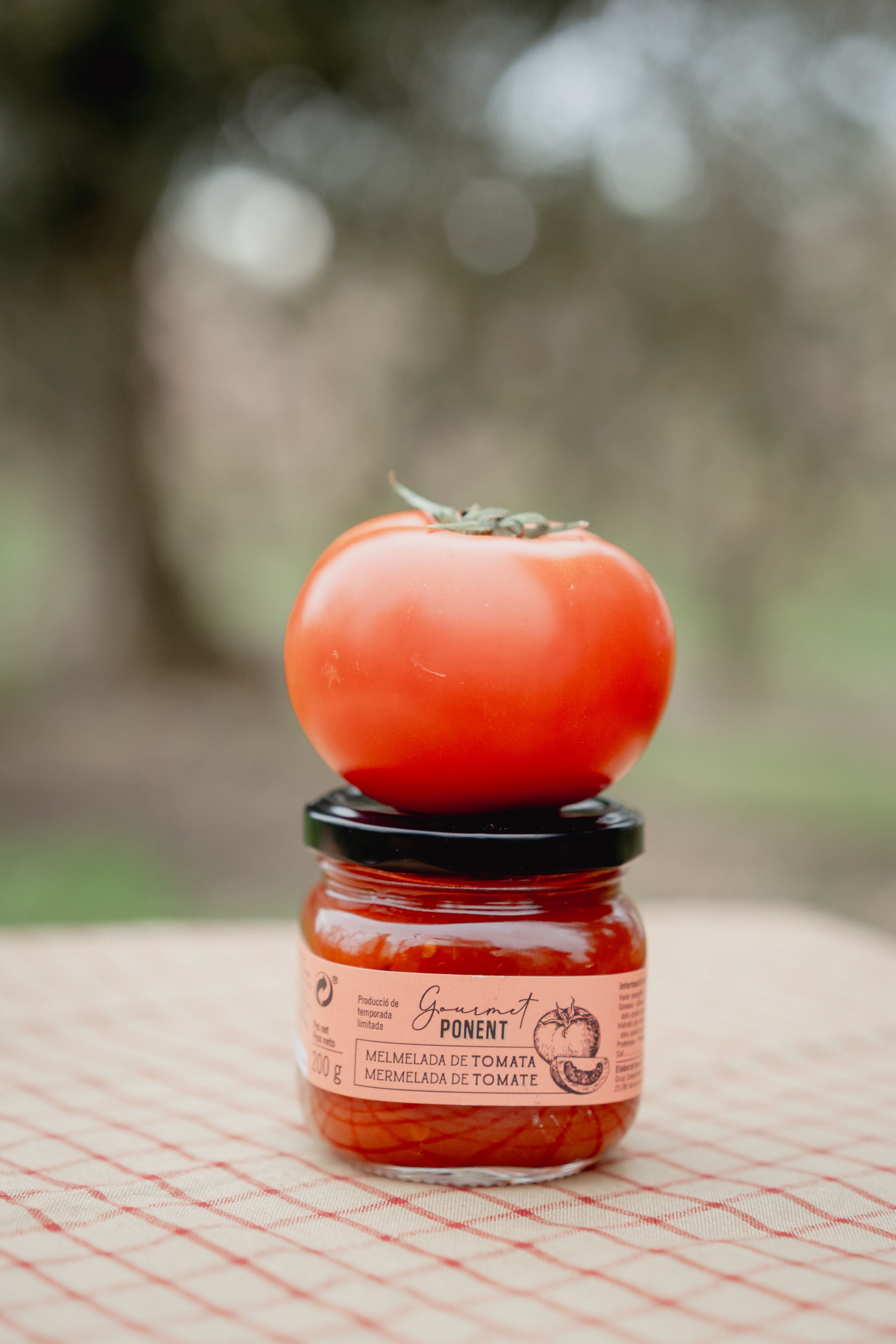 La nostra melmelada de tomàquet s'elabora mitjançant un mètode tradicional que busca l'equilibri perfecte entre la dolçor del sucre i l'acidesa natural del fruit. El procés comença amb la selecció de tomàquets madurs, que es preparen a partir de la cocció de peces senceres o trossejades.