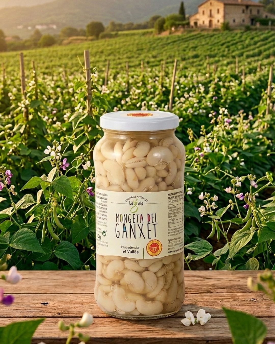 La Mongeta del Ganxet DOP en conserva és un dels llegums més preuats de Catalunya, reconeguda per la seva textura cremosa, la pell pràcticament imperceptible i un sabor suau i autèntic. Es tracta d’una varietat tradicional del Vallès, molt apreciada tant en cuina casolana com en gastronomia d’autor.