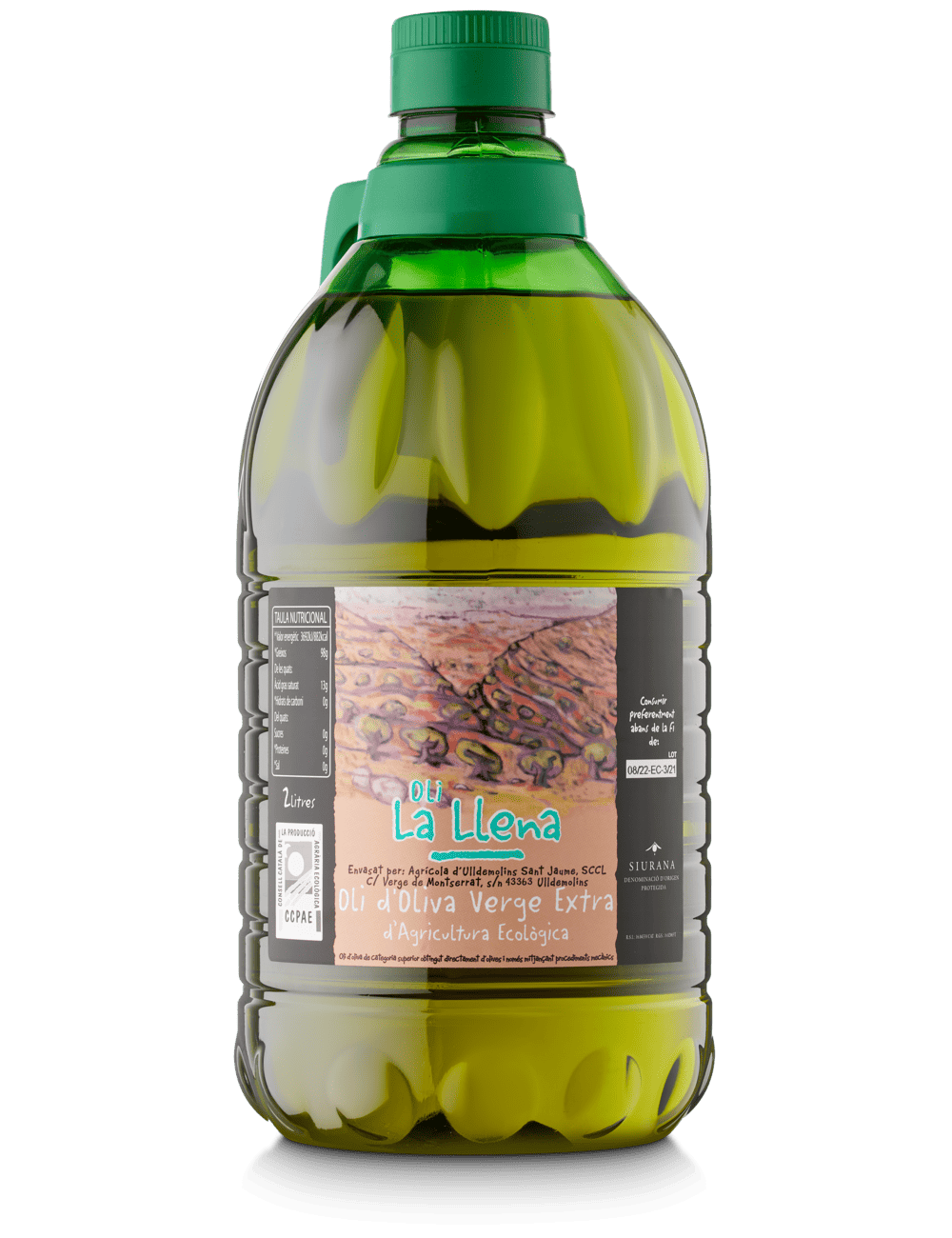 Oli d'Oliva Verge Extra ecològic La Llena, amb DOP Siurana, és un oli d’oliva verge extra de procedència ecològica, elaborat amb olives arbequines a la cooperativa d'Ulldemolins Sant Jaume. S’extreu de manera mecànica a baixa temperatura, preservant així totes les seves propietats naturals. La certificació del Consell Català de la Producció Ecològica (CCPAE) garanteix el cultiu ecològic de l'oliva i la producció d'aquest oli.
