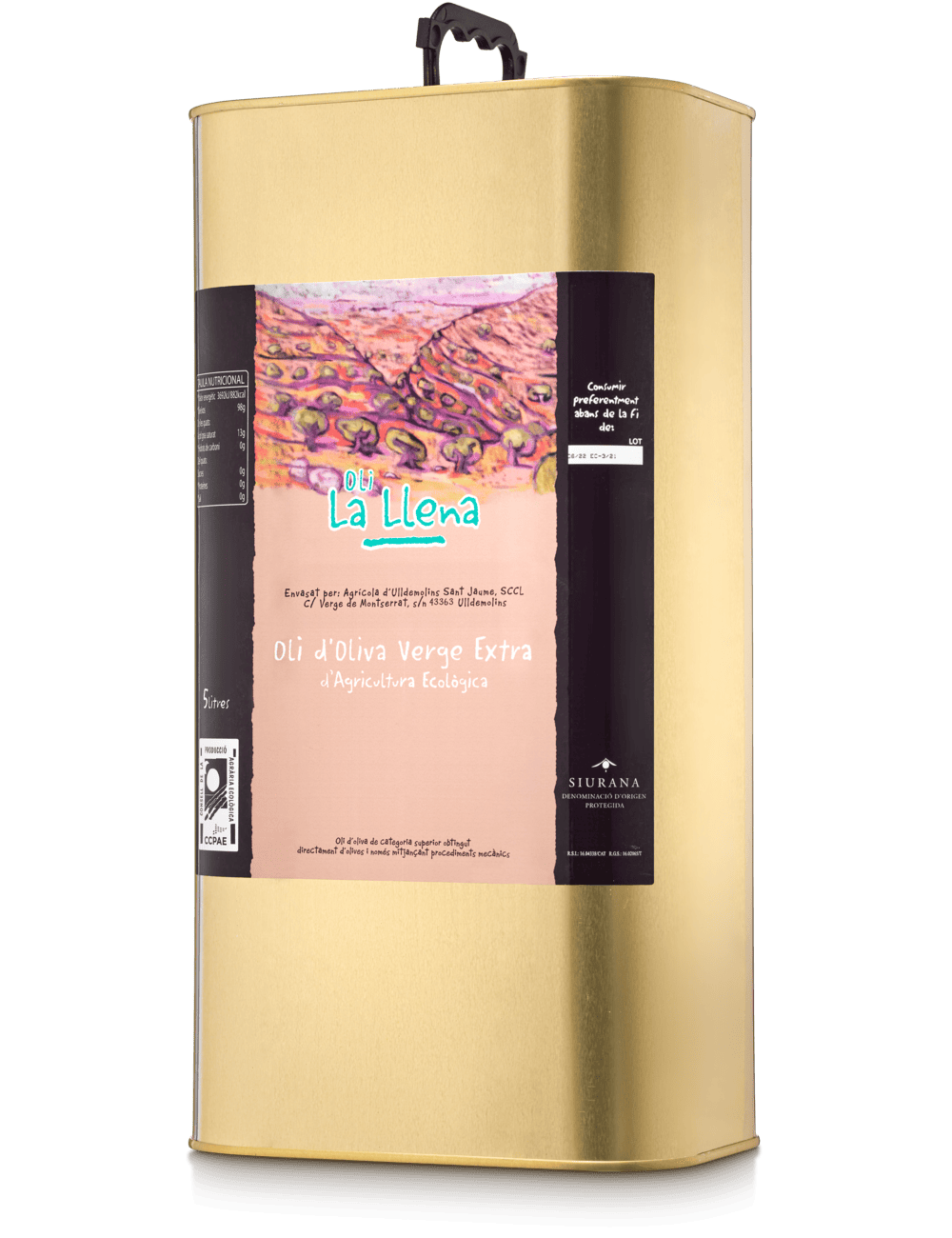 L’Oli la Llena DOP Siurana és un Oli d’Oliva Verge Extra ecològic que s’elabora amb olives 100% de la varietat arbequina procedents dels camps dels socis oleïcultors d'Ulldemolins, situats a 650 m d’altitud, al Parc Natural de Montsant i darrere la Serra de la Llena.