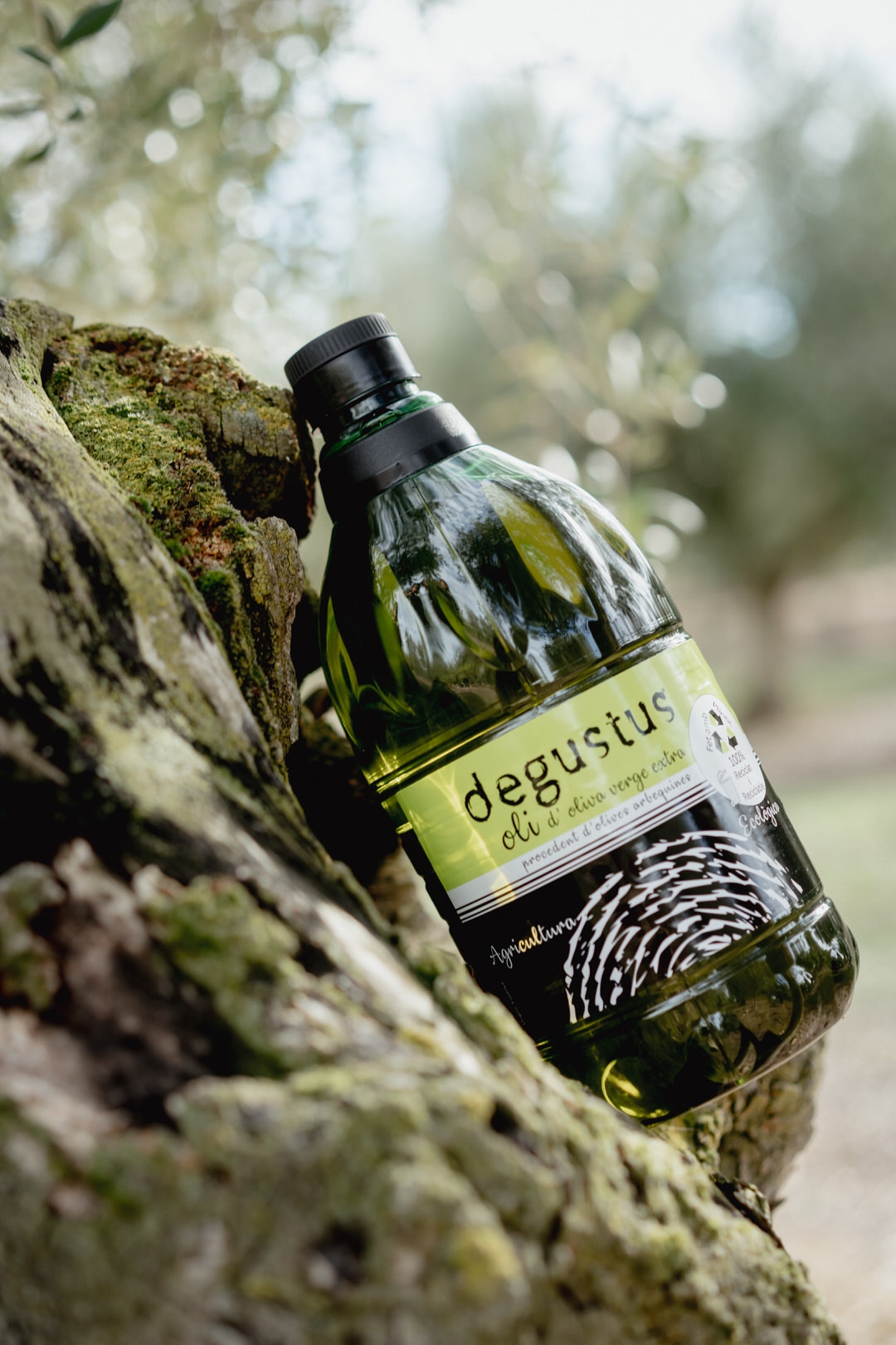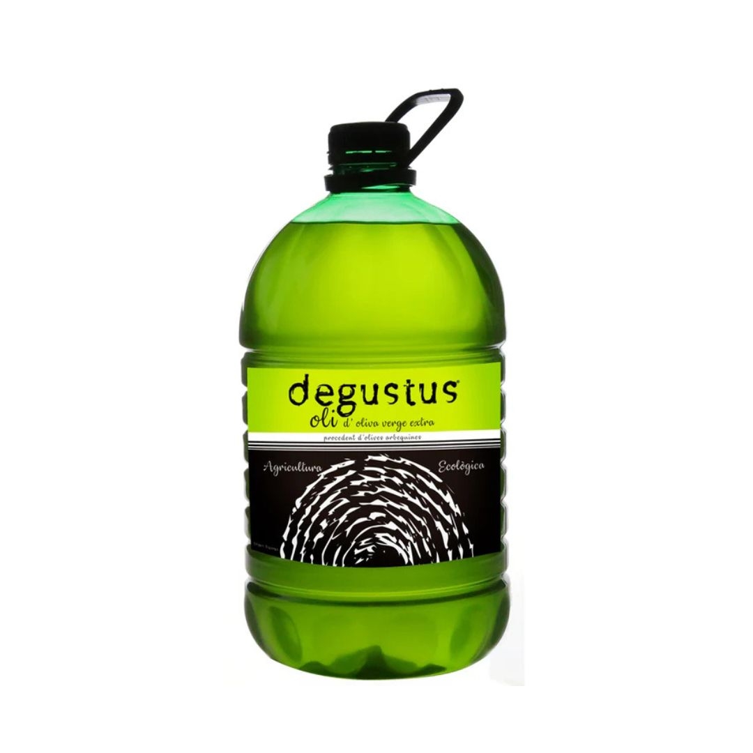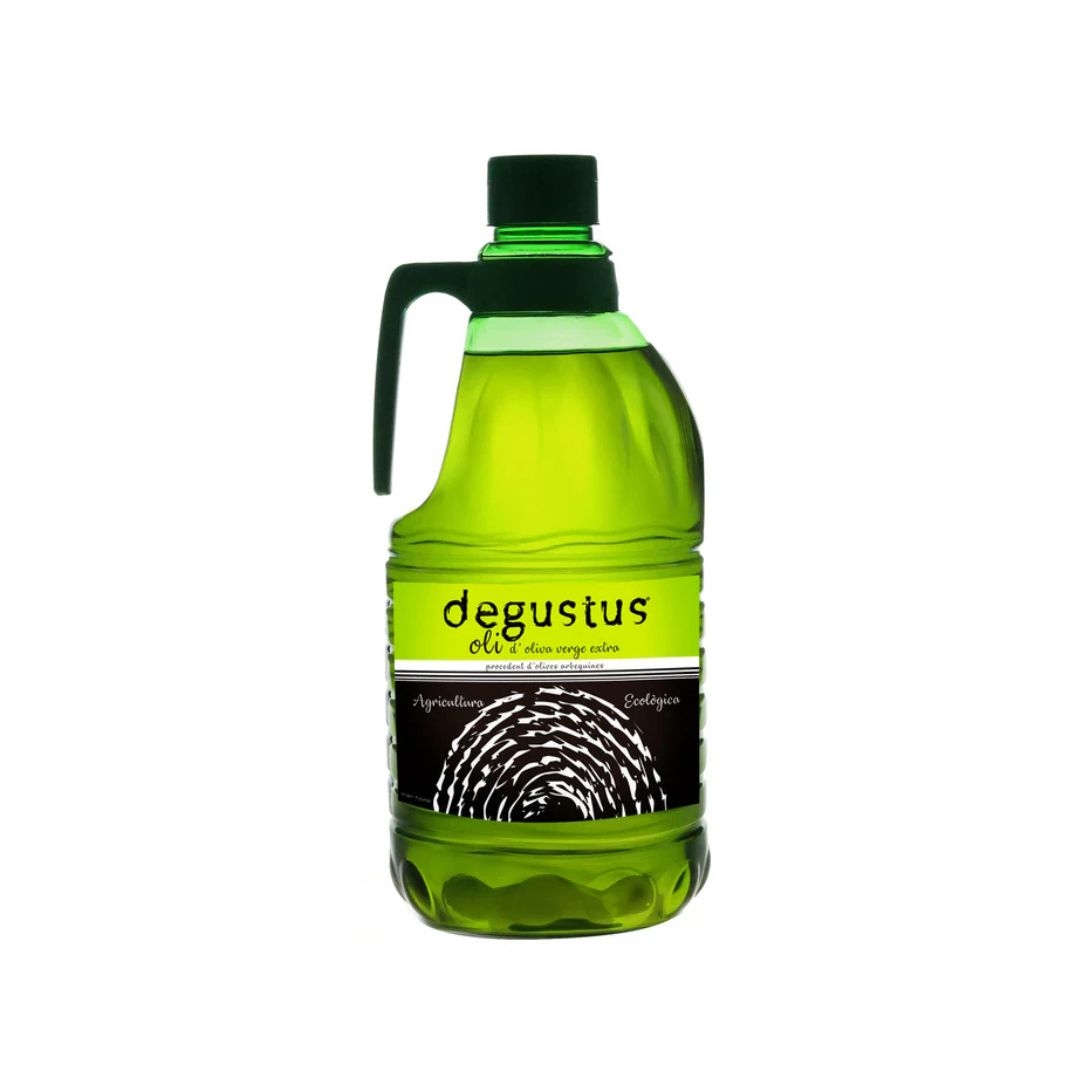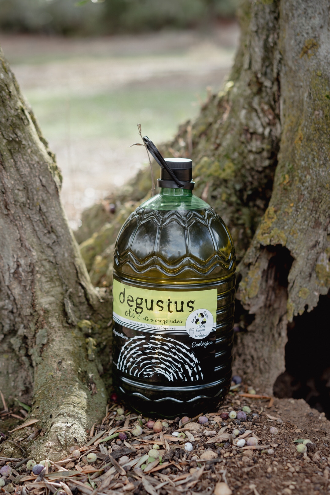 Oli verge extra Ecològica Degustus 2 l procedent d’olives arbequines de cultiu ecològic.
