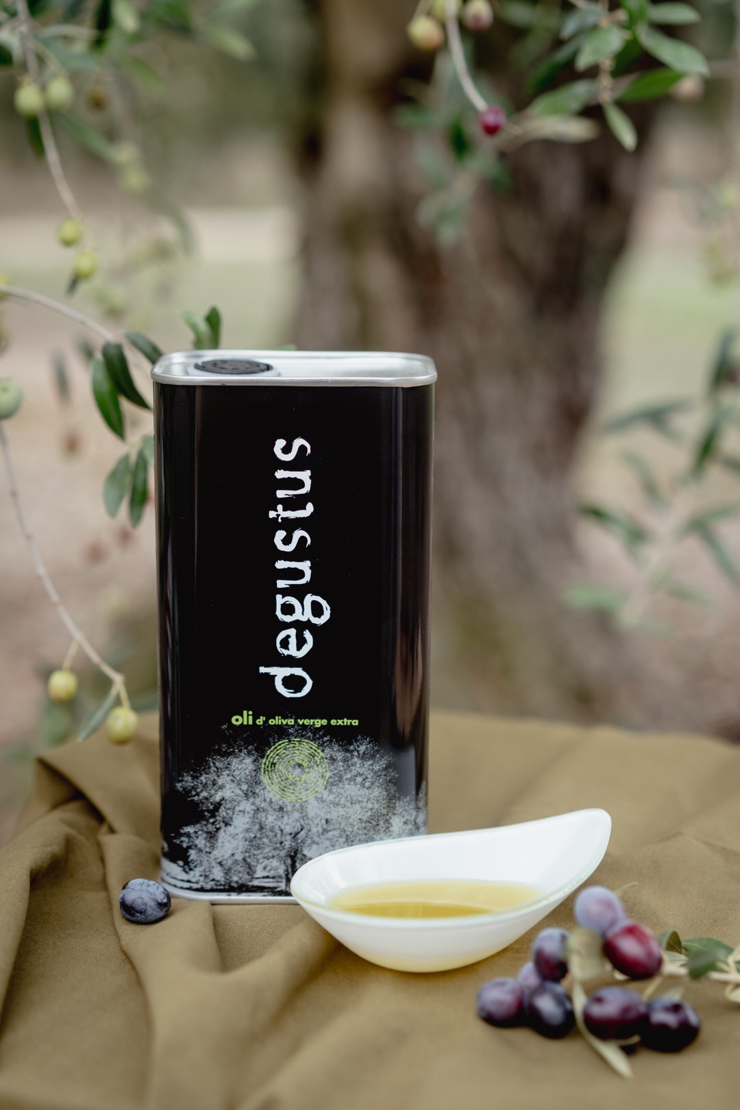 Oli Verge Extra Ecològic Degustus, elaborat amb fred, obtingut d'olives ecològiques de les Garrigues.