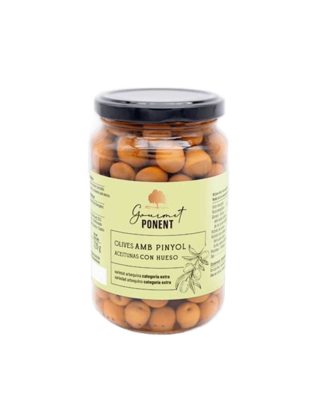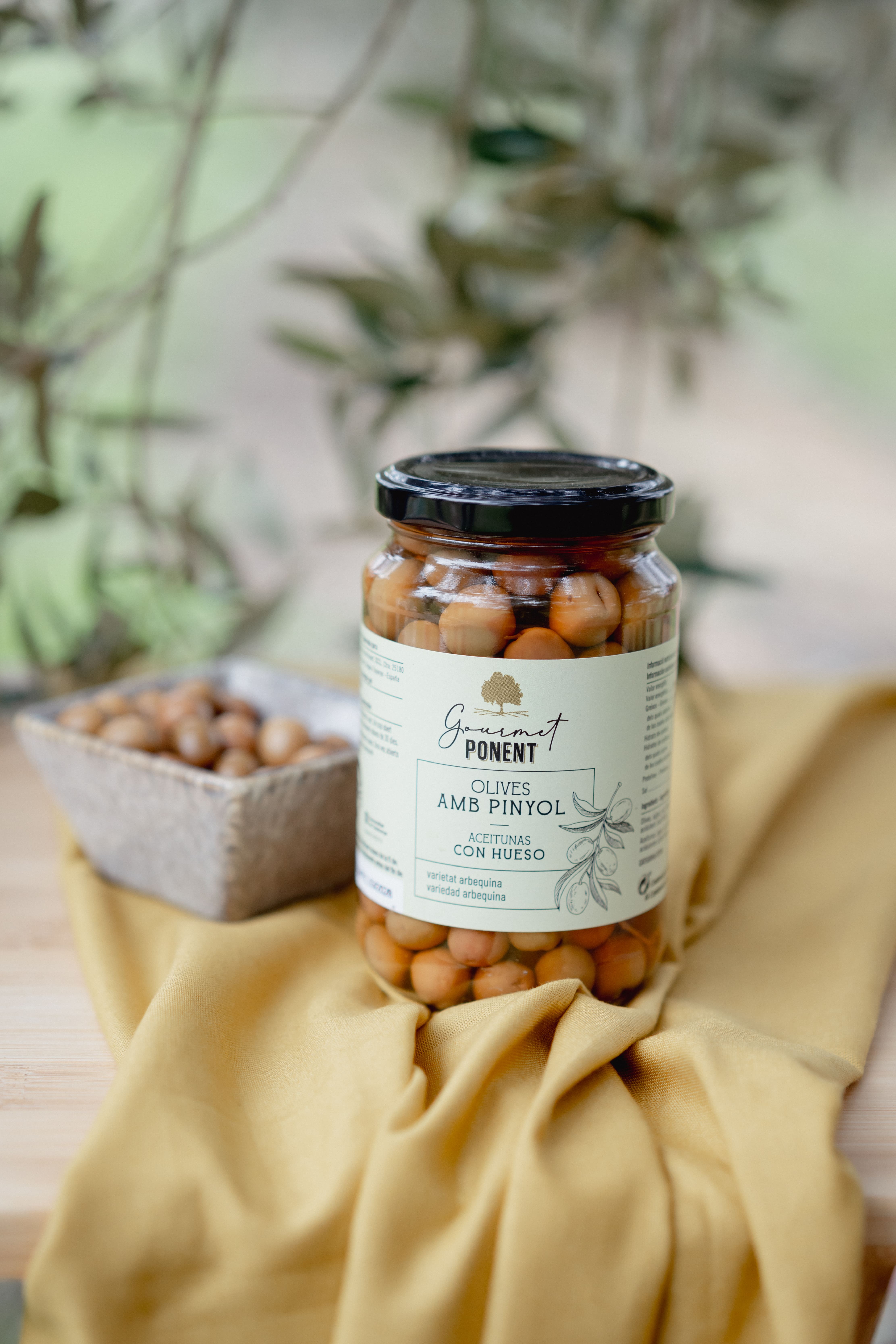 Les olives arbequines amb pinyol de Fruits de Ponent són elaborades de manera tradicional amb olives petites, però molt saboroses. Aquesta varietat, típica de les terres de Ponent, destaca pel seu gust suau, lleugerament amarg i amb un toc afruitat.