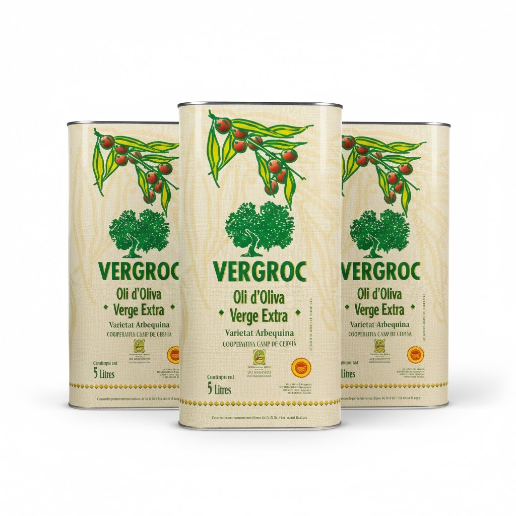 3 llaunes Oli d'Oliva Verge Extra Vergroc Camp de Cervià 5 litres.