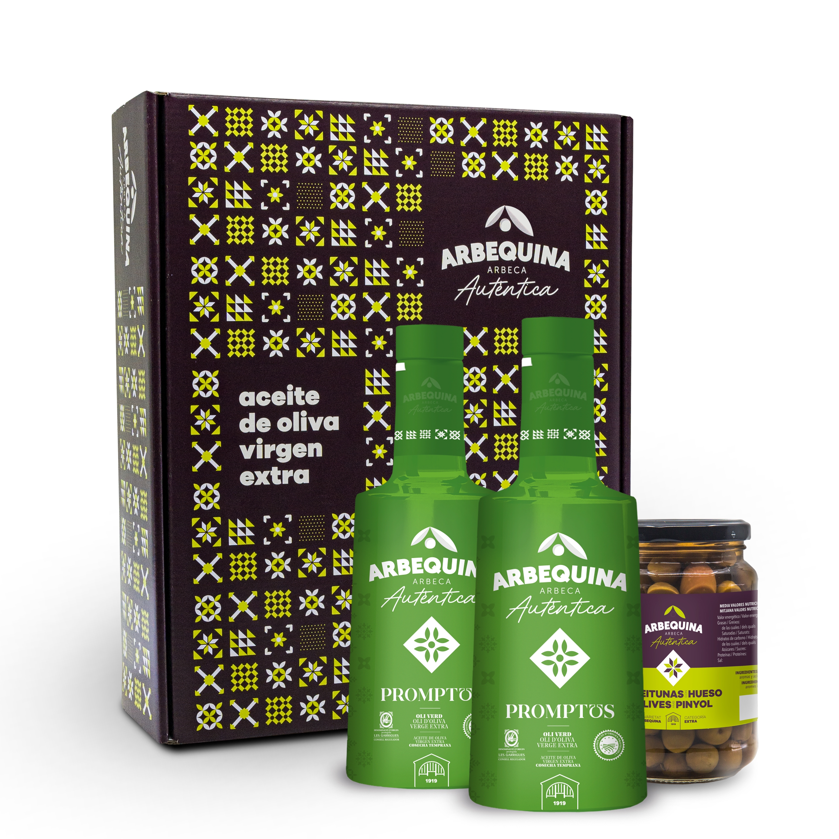 Pack Oli d’Oliva Verge Extra Arbequina Promptus Cooperativa Arbeca ideal per regalar o per oferir als invitats durant dinars o sopars a casa. Oli d'alta qualitat que no et deixarà indiferent!