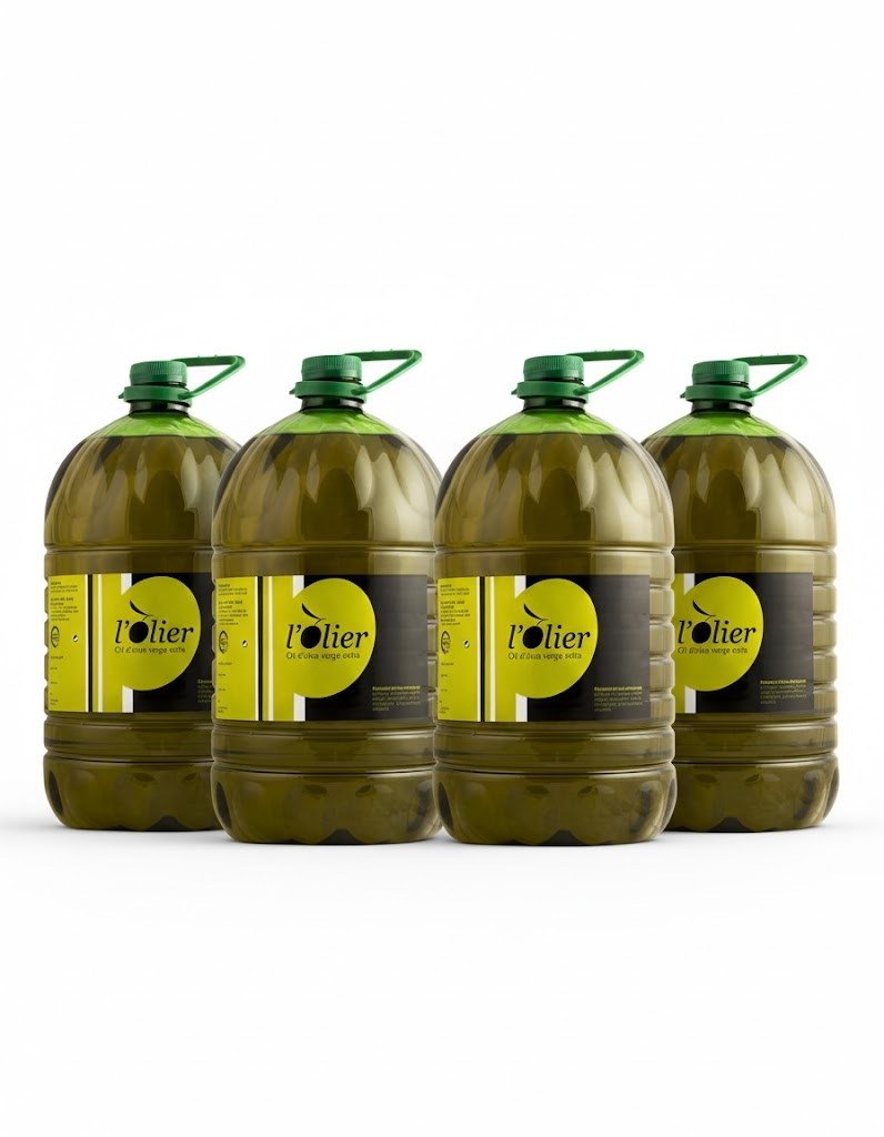 4 garrafes d'oli Verge Extra l'Olier cooperativa els Torms de 5 litres.