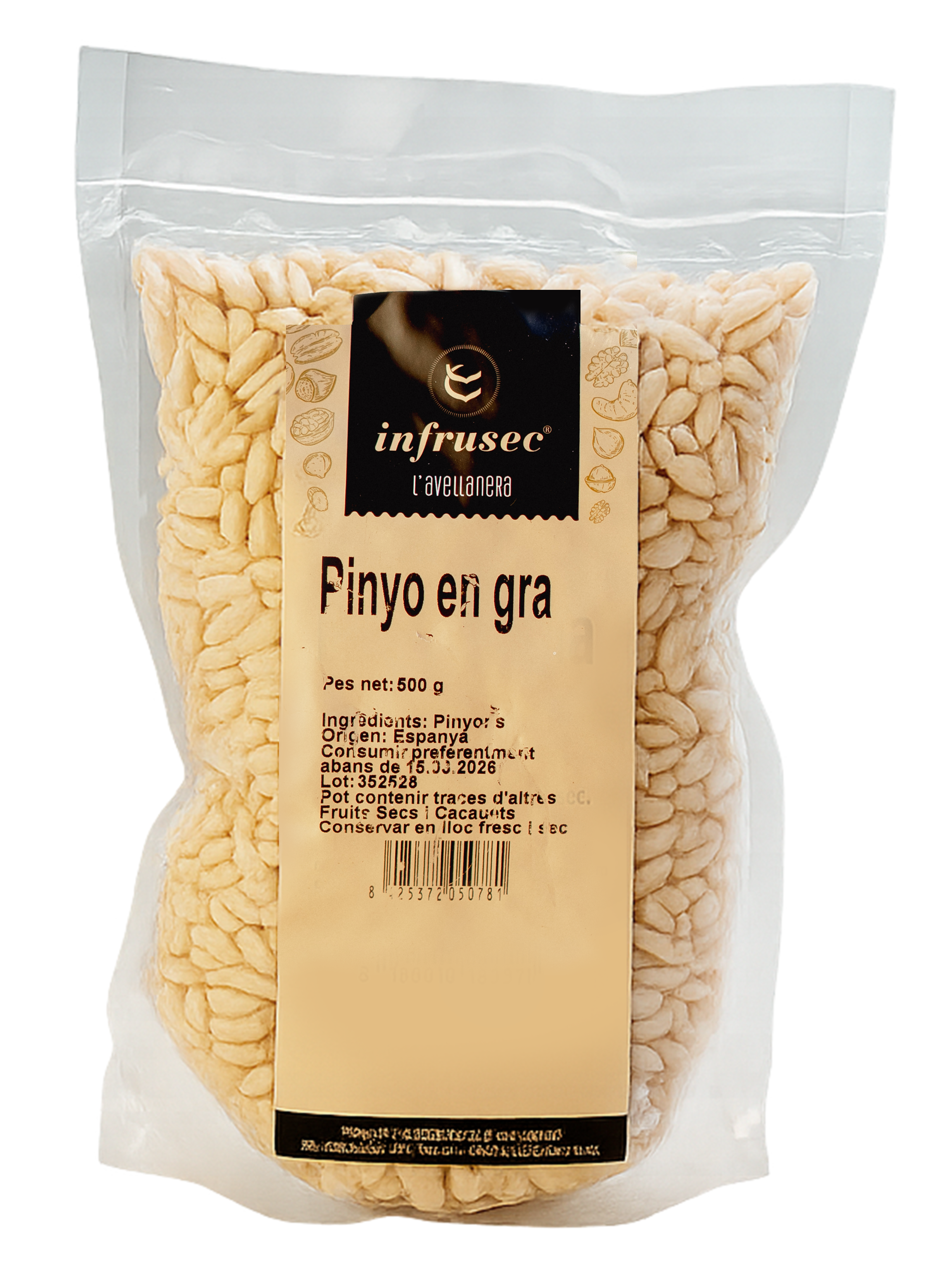 El Pinyó Infrusec Avellanera és un producte nacional procedent de Pedrajas de San Esteban (Valladolid) i és envasat per la Cooperativa L’Avellanera, garantint qualitat, frescor i traçabilitat des de l’origen fins al producte final.