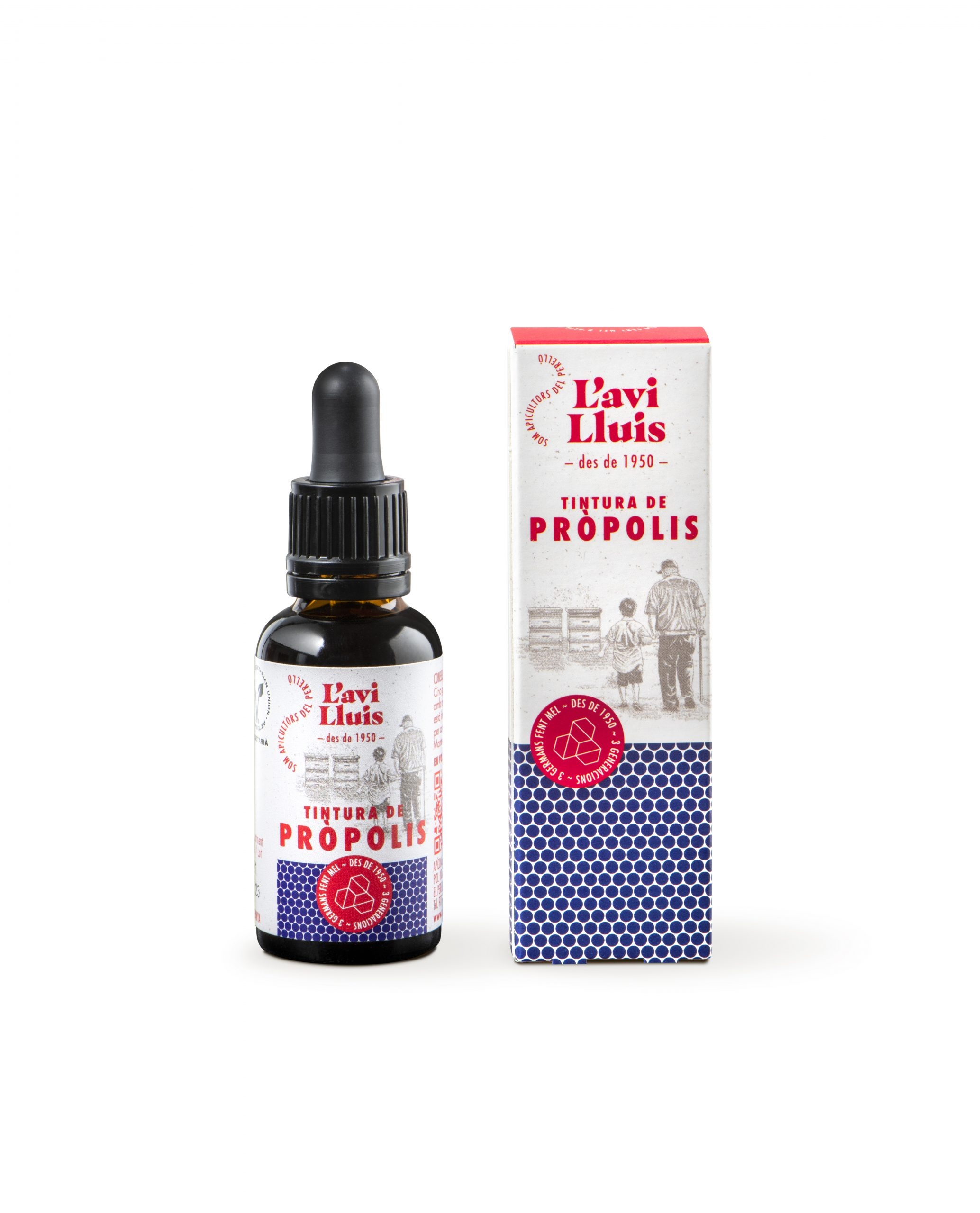 La tintura de pròpolis està elaborada per apicultors Brull Casanova sota la marca Rebost Avi Lluís. El pròpolis és una substància natural produïda per les abelles a partir de resines d’arbres i plantes, que utilitzen per protegir i desinfectar el rusc. Aquest producte apícola és 100% natural i destaca per la seva alta qualitat.