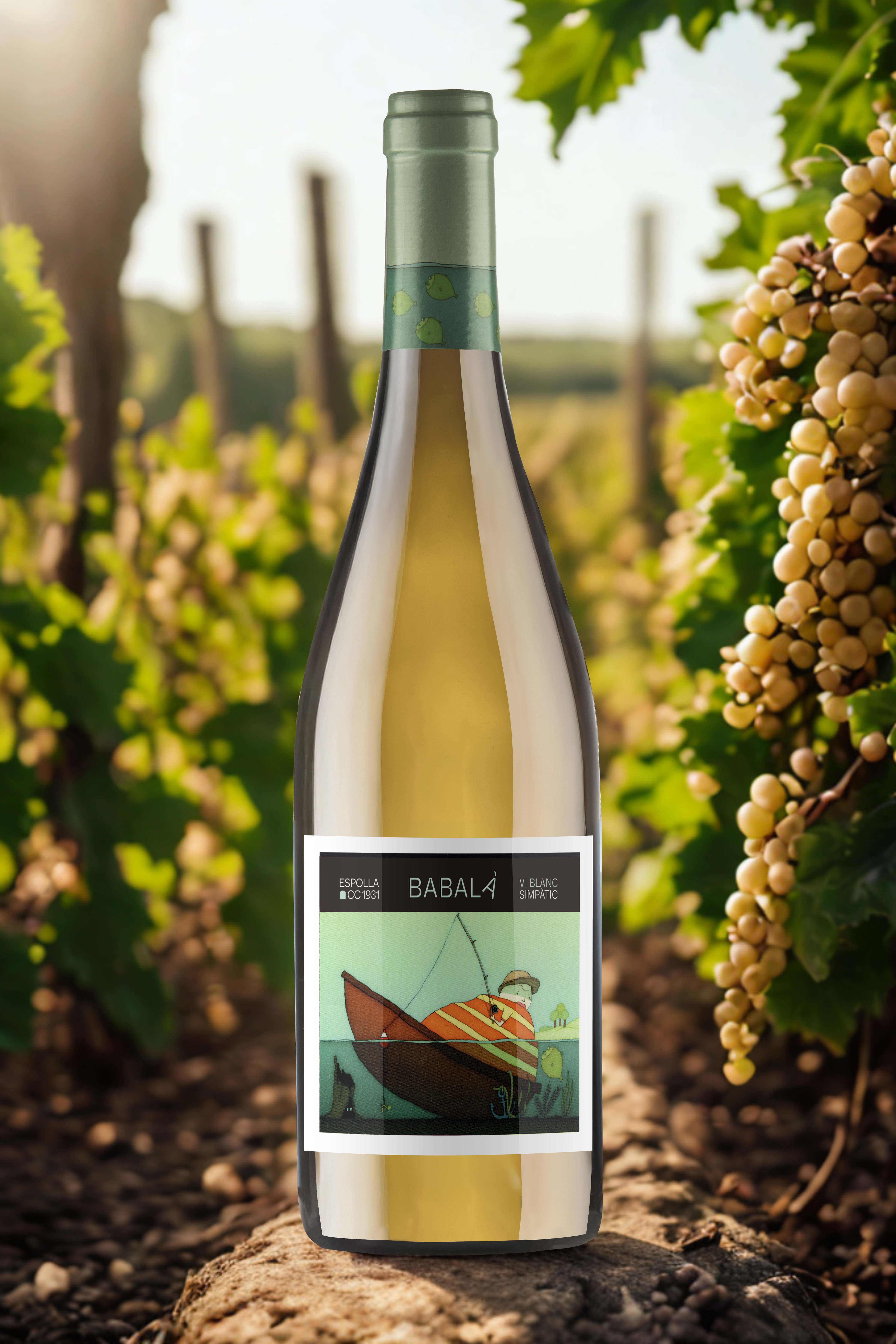 El Babalà Simpàtic és un vi blanc jove i aromàtic elaborat per Celler Espolla a l’Empordà. Aquest vi blanc elaborat únicament amb mostos flor, la part més fina i delicada del premsat del raïm. Les varietats fermenten conjuntament a temperatura controlada en dipòsits de ciment per preservar tota la seva expressió aromàtica. La fermentació s’atura mitjançant fred per conservar una petita quantitat de sucre residual que aporta suavitat i rodonesa al conjunt. Posteriorment, el vi realitza una criança de quatre mesos amb les seves mares fines, amb bastonatges setmanals que aporten més complexitat i volum en boca.